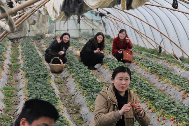 走進(jìn)大自然,大家的視野一下子變得開闊起來,女職工們在田野里盡情感受春天氣息,塑料大棚里一片生機(jī)勃勃,翠綠葉子、鮮紅欲滴的草莓,芬芳的果香都讓人感到陶醉。女員工們一邊品嘗一邊采摘,動手的喜悅、品嘗的幸福、打趣的笑聲溢滿大棚,一個小時后,所有人都有了豐碩的成果。
