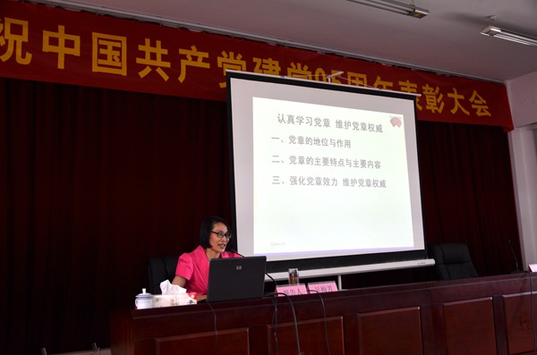 吳梅芳教授為大家作了題為“認真學習黨章、維護黨章權(quán)威”的專題黨課。她從黨章的地位和作用、黨章的主要特點與主要內(nèi)容以及強化黨章效力、維護黨章權(quán)威等方面詳細解讀了黨章的總綱、條文內(nèi)容與邏輯結(jié)構(gòu)。她用樸實的言語、典型的事例全面系統(tǒng)的解讀了黨章的地位和作用、黨章主要特點和主要內(nèi)容,詮釋了認真學習黨章、嚴格遵守黨章的重要性,闡述了強化黨章效力、維護黨章權(quán)威的現(xiàn)實意義。