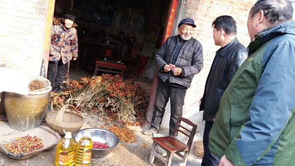 譙東鎮(zhèn)余集村是我市重點貧困村,我公司負責13戶特困村民,春季前夕,專程為特困村民送去慰問金和食用油,送去黨和政府的溫暖,送去鹽業(yè)人的關愛。每到一戶,榮立華都問寒問暖,并叮囑他們保重身體,87歲的特困戶李秀蘭拉著榮立華的手熱淚盈眶,連聲感謝黨和政府的關懷,榮立華叮囑老人我們會把扶貧工作做好做到位,希望老人家安度晚年、健康長壽。