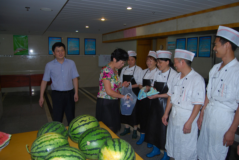 酷暑盛夏之際,7月31日上午,省公司副總經(jīng)理?xiàng)顣员蚵使?huì)、辦公室人員到鹽業(yè)大廈職工餐廳開展“夏日送清涼”慰問活動(dòng),為堅(jiān)守在高溫環(huán)境下工作的餐廳工作人員送去了毛巾、西瓜、茶葉等清涼用品,表達(dá)了省公司領(lǐng)導(dǎo)和大廈全體職工對(duì)他們的關(guān)心。餐廳工作人員非常感謝省公司的關(guān)懷,并表示要進(jìn)一步做好本職工作,提高飯菜質(zhì)量和服務(wù)水平,更好地為廣大職工服務(wù)。