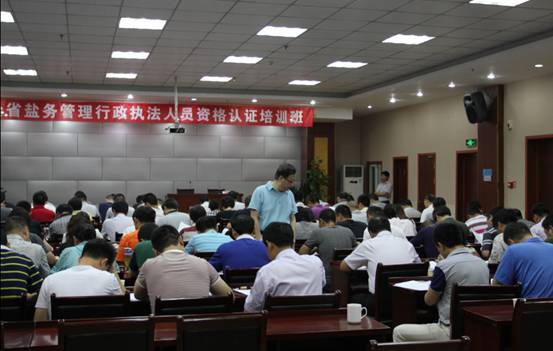 2015年6月24日—25日,全省鹽務(wù)管理行政執(zhí)法人員資格認(rèn)證考試培訓(xùn)班在合肥市海悅花園酒店舉辦,共有127名鹽政人員參加了此次培訓(xùn)和考試,考前舉行了開班儀式和為期一天半的考前培訓(xùn)。
