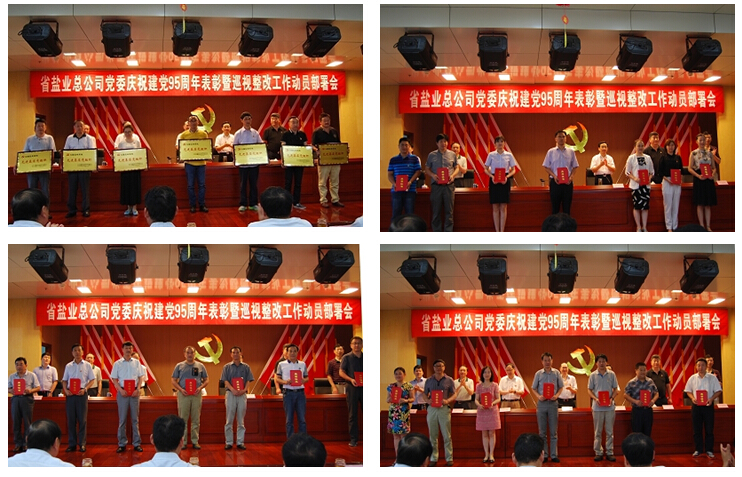 7月1日上午,省鹽業(yè)總公司慶祝建黨95周年表彰暨巡視整改工作動(dòng)員部署會(huì)在鹽業(yè)大廈召開(kāi)。會(huì)議表彰了黨的十八大以來(lái)全省鹽業(yè)系統(tǒng)涌現(xiàn)出的先進(jìn)基層黨組織、優(yōu)秀共產(chǎn)黨員、優(yōu)秀基層黨組織書記和優(yōu)秀黨務(wù)工作者,對(duì)全系統(tǒng)“兩學(xué)一做”學(xué)習(xí)教育和落實(shí)巡視整改工作進(jìn)行了再動(dòng)員再部署。省公司黨委書記、總經(jīng)理詹先豪作重要講話暨黨課報(bào)告。省公司黨委副書記、紀(jì)委書記王思軍主持會(huì)議。省公司領(lǐng)導(dǎo)班子其他成員,各市公司、直屬(控股)公司黨政主要負(fù)責(zé)人、組織人事部門負(fù)責(zé)人,部分受表彰代表以及省公司本部全體黨員參加了會(huì)議。