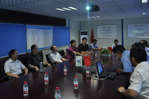 詹先豪一行聽取中建八局項(xiàng)目經(jīng)理就有關(guān)工程進(jìn)度匯報(bào)