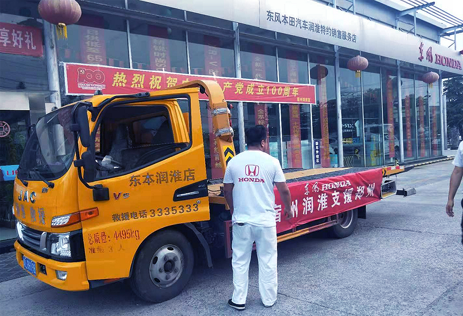 鄭州水災牽動著每一名國人的心,在得知鄭州市眾多車輛遇水拋錨堵塞路面、阻礙交通,急需暢通道路救援后,宿州潤淮東本4S店在弘德公司支持下第一時間與災區(qū)方面取得聯(lián)系,在經(jīng)過高效的對接工作后,立即組織了一支由四臺施救車輛組成的搶險救援隊,安排公司車間主任李楠帶隊,星夜奔赴災區(qū),火速馳援!救援車隊當晚抵達鄭州災區(qū)后,并未進行修整,旋即投入到緊張的救援工作中去。災區(qū)險情千變萬化,作業(yè)環(huán)境尤為艱苦,作為宿州潤淮團隊的精英干將,我救援車隊成員,牢記國企使命,發(fā)揚不怕苦、不怕累精神,風餐露宿,帶著一腔熱血夜以繼日地進行著搶險施救工作。截止目前,我救援車隊已成功施救車輛110余臺,有效緩解了道路堵塞狀況,為救援爭取寶貴時間。