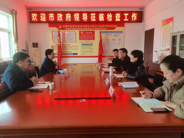 3月1日,宿州市副市長(zhǎng)楊澤勝到宿州市鹽業(yè)公司調(diào)研指導(dǎo)工作,市政府辦副主任程利陪同調(diào)研。