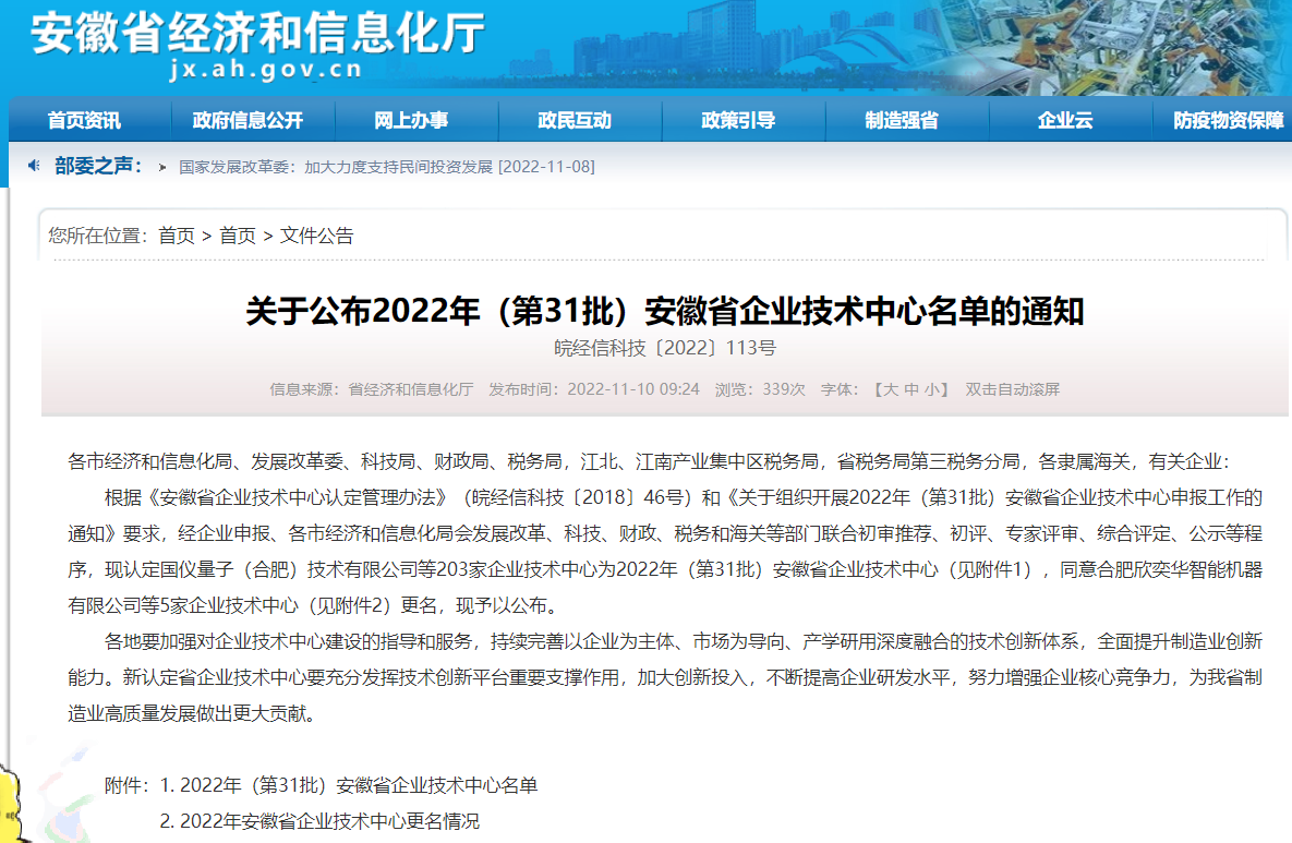 近日,安徽省經(jīng)濟和信息化廳公布了2022年安徽省企業(yè)技術(shù)中心(第31批)認(rèn)定名單,安徽環(huán)境科技集團榮列其中,該榮譽的獲得彰顯了企業(yè)的綜合競爭實力以及顯著的技術(shù)創(chuàng)新能力。