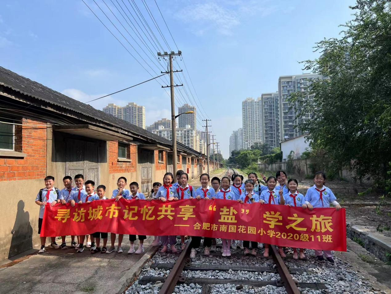 在鐵路專用線,同學(xué)們聽老師講解,知道合肥人吃的鹽都從哪里來(lái),了解鐵路專用線的建造和停用背景。