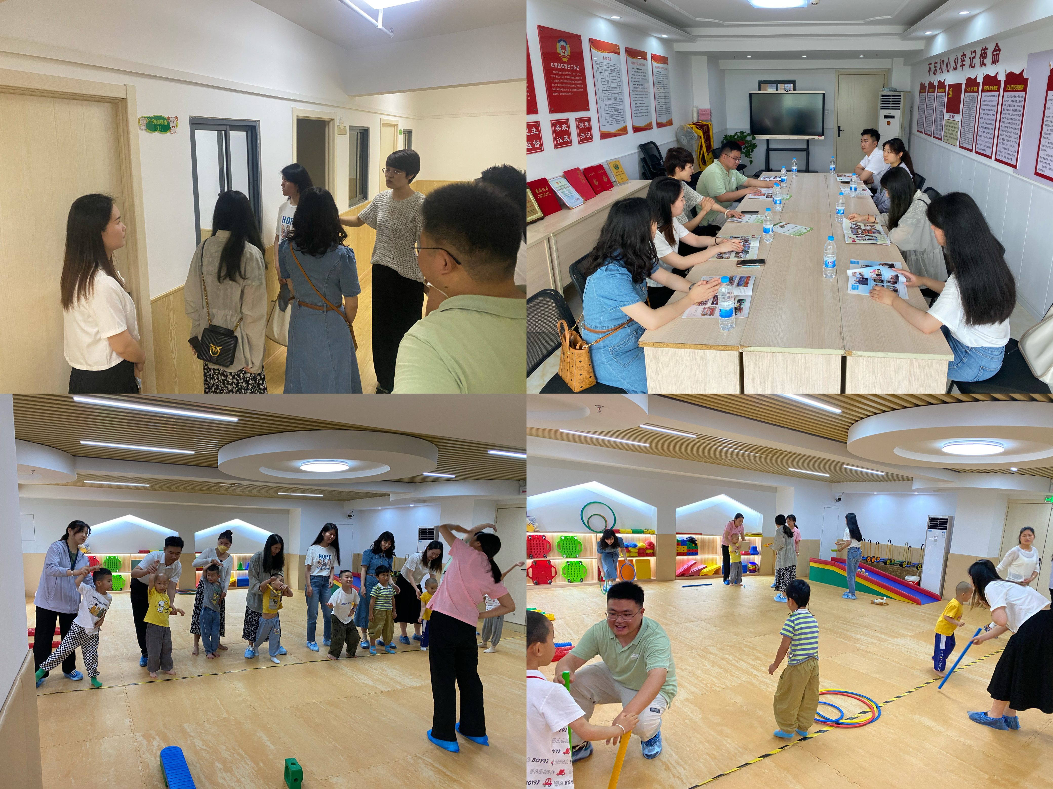 志愿服務(wù)隊(duì)的團(tuán)員青年們還與孩子們共同上了一節(jié)感統(tǒng)課,每一位青年扮演孩子們的“臨時(shí)爸爸”“臨時(shí)媽媽”,在感統(tǒng)教室里陪著孩子們一對一的完成各項(xiàng)平衡類體育游戲訓(xùn)練。短暫的相處,讓團(tuán)員青年們感受到了孩子家長和老師的堅(jiān)守和付出?;顒?dòng)結(jié)束,匯錦兒童康復(fù)中心向集團(tuán)公司黨委贈(zèng)送了錦旗。