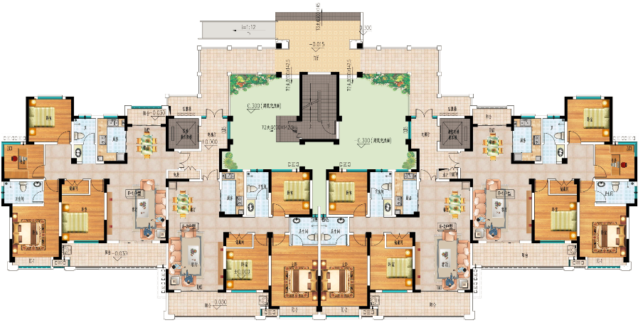 小區(qū)整體環(huán)境力求精細(xì)化,盡力營(yíng)造視覺(jué)上享受。對(duì)綠化景觀與道路系統(tǒng)在整體不變的情況下,作細(xì)節(jié)上烘托。