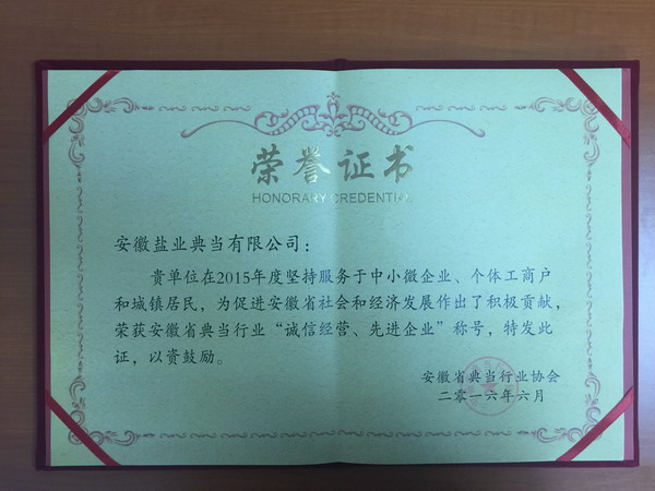 6月7日,全省典當管理工作會議暨省典當協(xié)會會員大會召開?;整}典當公司因在支持中小企業(yè)融資,服務地方經(jīng)濟建設,積極承擔社會責任中取得的突出成績,喜獲2015年度安徽省典當行業(yè)上繳稅金“十佳企業(yè)”、安徽省典當行業(yè)“誠信經(jīng)營、先進企業(yè)”兩項榮譽稱號。